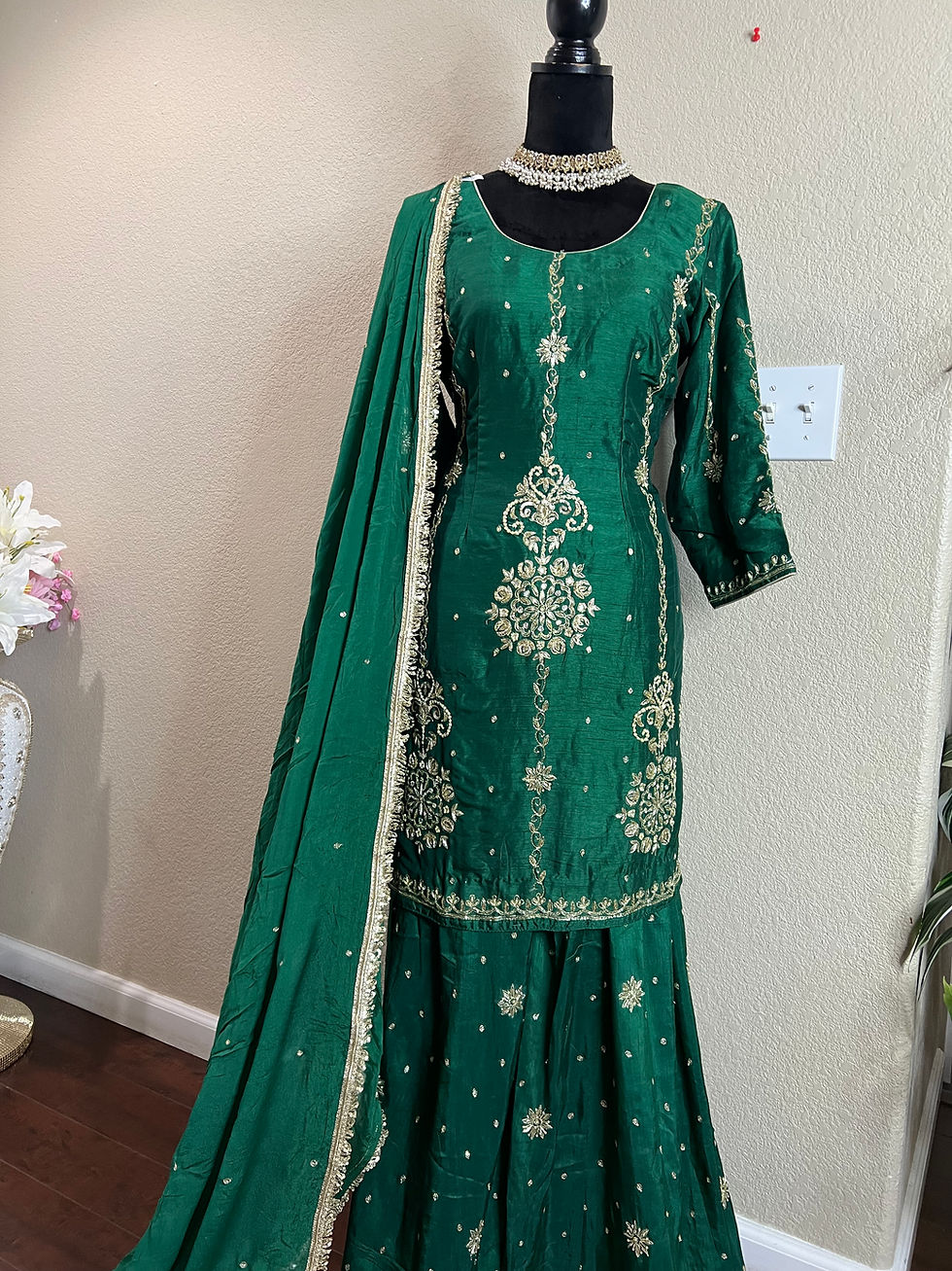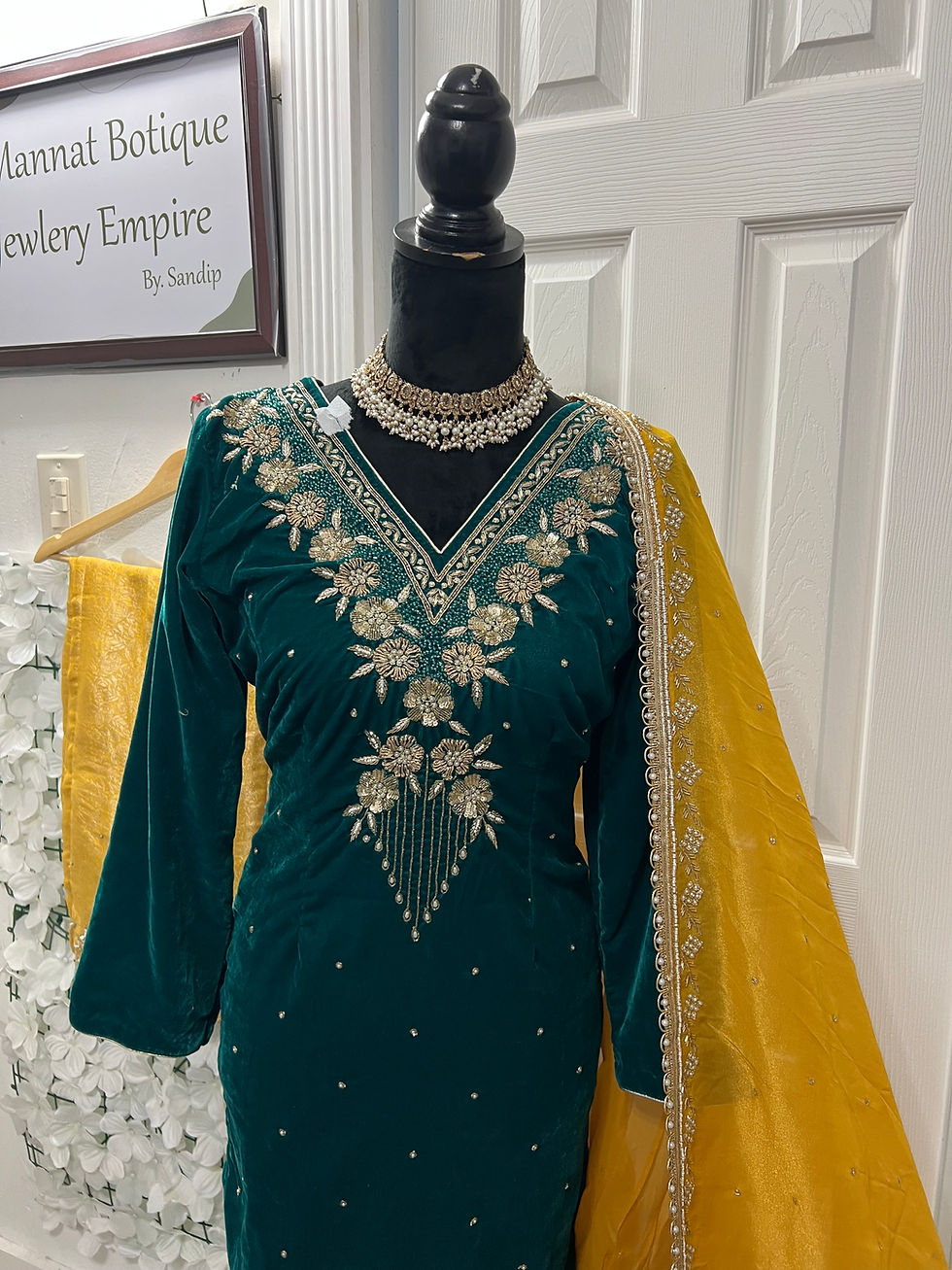 Green Velvet Palazo Suit Code036G
