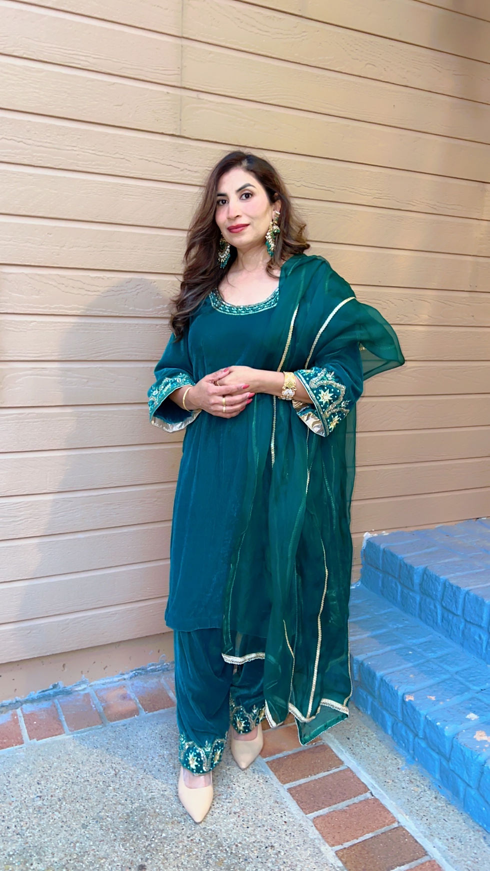 Teal Color Velvet Suit