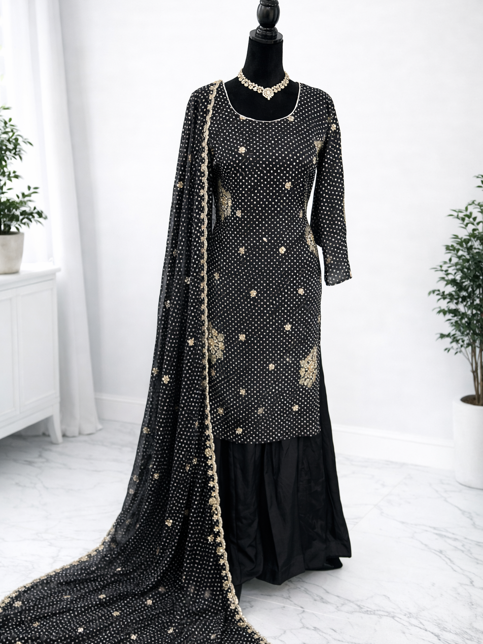 Black Bandani Handwork Sharara Suit Code 40BB