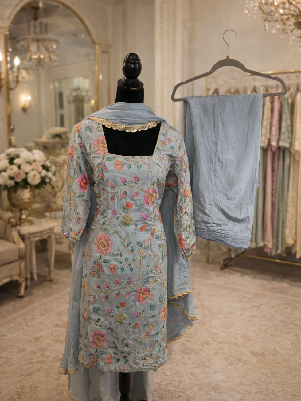 Discover elegance with the crape handwork fabric salwar suit code 50 at Mannat Boutique, crafted for the discerning wearer seeking traditional charm and modern comfort. This fully stitched suit features meticulous lining, piping, and a convenient zipper, complemented by a dori in the back for a perfect fit. Paired with a pure chinon dupatta adorned with delicate lace, it offers a graceful ensemble for any occasion. At Mannat Boutique, we pride ourselves on delivering high-quality Indian outfits that blend craftsmanship with style, ensuring you stand out effortlessly. Embrace sophistication and ease with this exquisite salwar suit tailored to elevate your wardrobe.