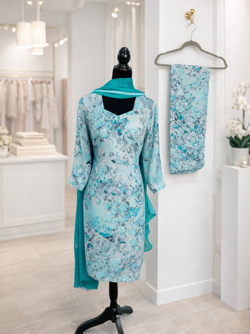 Experience elegance with the Crape Print Salwar Suit Code 4446, crafted from premium crape fabric for a comfortable and stylish fit. This fully stitched suit features meticulous lining, piping, a convenient zipper, and a dori in the back to ensure a perfect silhouette. Complemented by a pure chinon duppatta with delicate lace, it embodies the refined craftsmanship Mannat Boutique is known for. Designed for those who appreciate authentic Indian outfits, this ensemble blends tradition with contemporary detailing. Shop confidently knowing every piece from Mannat Boutique reflects quality and timeless style.