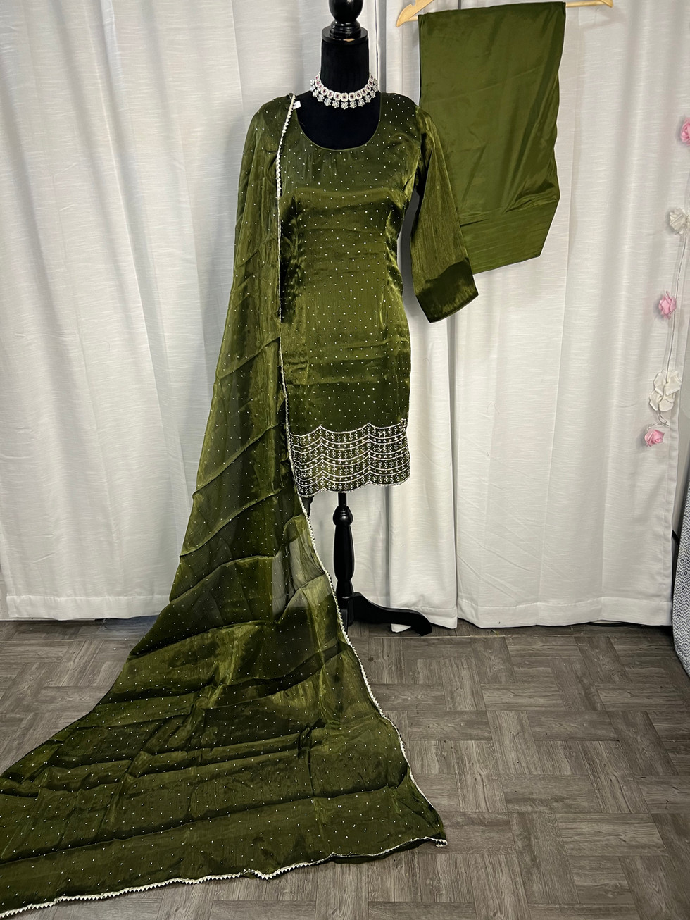 Elevate your wardrobe with our exquisite Crush Seminfandy Silk Farshi Salwar Suit. Crafted from luxurious fandy silk, this fully stitched suit features a detailed lining, sleek piping, a convenient zipper, and charming latkan embellishments. The matching duppatta, also made of fandy silk and trimmed with delicate lace, completes this elegant ensemble. Perfect for special occasions, this outfit embodies the essence of traditional sophistication and contemporary style. Celebrate your unique beauty with Mannat Boutique's timeless collection of Indian outfits.