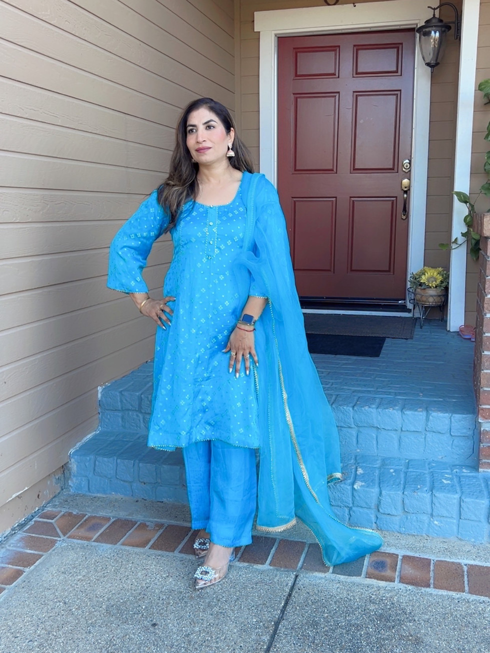 Introducing the exquisite Frozi A-Line Suit from Mannat Boutique, meticulously crafted with pure zari work fabric. This fully stitched suit features an A-Line shirt adorned with Kaliyah and golden lace detailing, paired perfectly with a tailored trouser. Complementing the ensemble is a pure organza dupatta with luxurious golden lace, adding an ethereal touch. Each piece includes lining for added comfort and elegance. Elevate your wardrobe with this timeless, high-quality outfit that reflects the values and craftsmanship of Mannat Boutique.