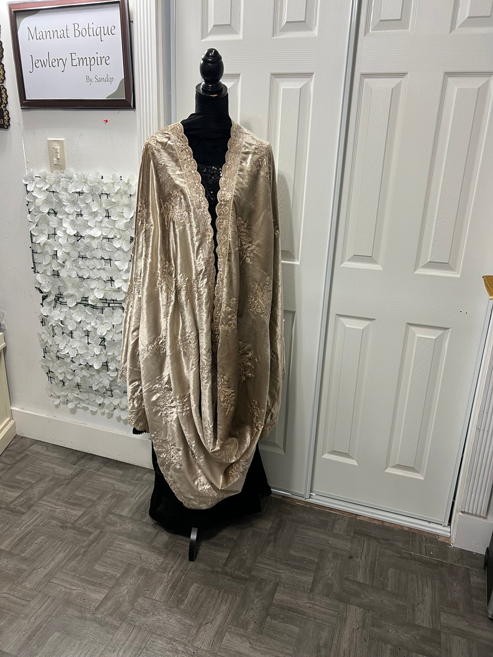 Elevate your elegance with the Golden Velvet Shawl code 007 from Mannat Boutique. This exquisite piece is crafted from pure velvet fabric, ensuring a luxurious feel and impeccable appearance. The high-quality heavy wool shawl provides exceptional warmth and softness, making it perfect for any occasion. Embrace the rich heritage of Indian outfits with this enchanting accessory, designed to add a touch of sophistication to your wardrobe. Discover timeless beauty and unmatched quality with our Golden Velvet Shawl.