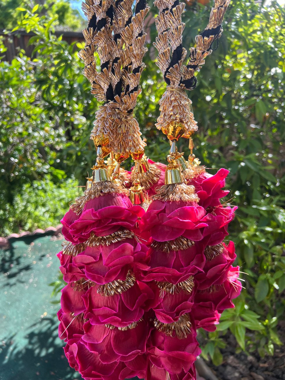 Elevate your traditional Indian ensemble with the hot pink flowers paranda with golden gotta from Mannat Boutique. Expertly crafted to complement vibrant ethnic outfits, this paranda adds a pop of color and a touch of elegance with its intricate golden gotta detailing. Designed for those who appreciate quality and style, it embodies the essence of handcrafted Indian accessories. Perfect for festive occasions or daily wear, this paranda enhances your look with subtle sophistication. At Mannat Boutique, we are committed to delivering authentic, stylish pieces that celebrate Indian heritage with a modern twist.