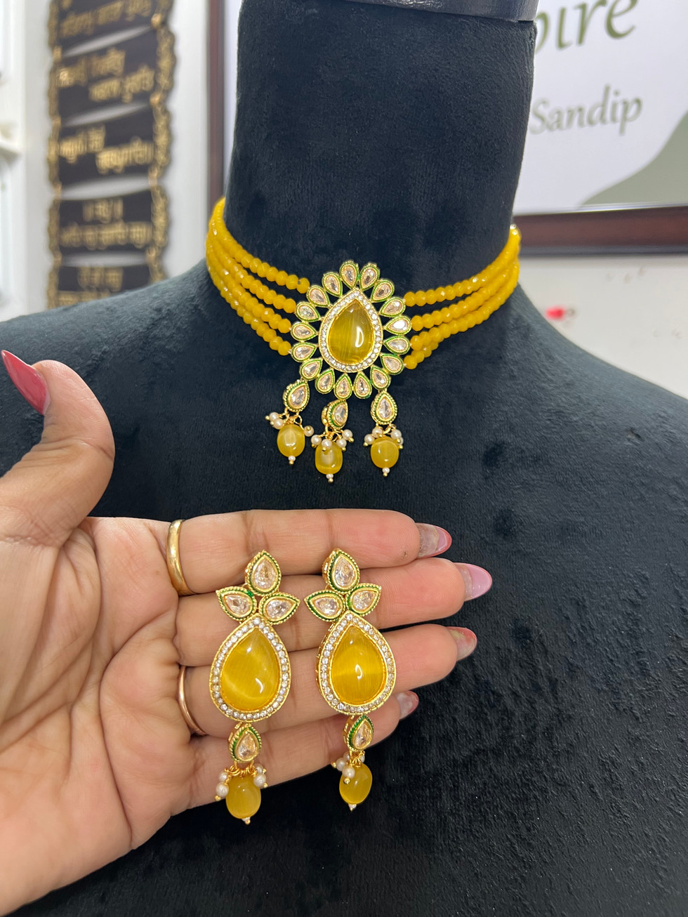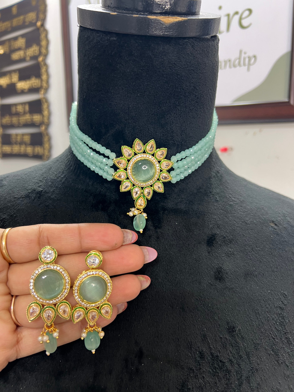 Elevate your ensemble with the Kundan Choker Set Code 02k from Mannat Boutique. This exquisite ankhat kundan choker set showcases high-quality mossonite stone and pearls on it, ensuring an unparalleled touch of elegance. Perfect for traditional Indian outfits, its intricate design epitomizes sophistication and grace. At Mannat Boutique, we prioritize quality and craftsmanship, offering you timeless pieces that complement your unique style. Discover the blend of tradition and luxury with this stunning choker set.