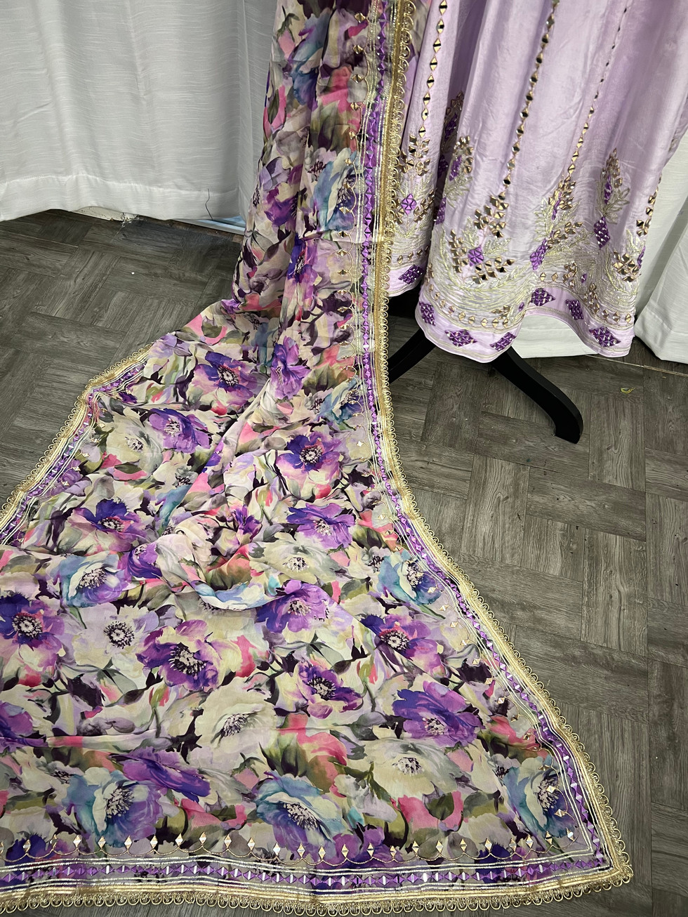 Discover elegance with our Light Purple Anarkali Suit Code 42 at Mannat Boutique. Crafted from pure chinon fabric, this suit features exquisite heavy handwork and includes an Anarkali pant palazo design. Complemented by a pure organza print and intricate handwork, the fully stitched suit offers premium comfort with its lining, piping, zipper, and latkan. Perfect for any occasion, this suit embodies the fine craftsmanship and sophisticated style you deserve. Elevate your wardrobe with this stunning ensemble today!