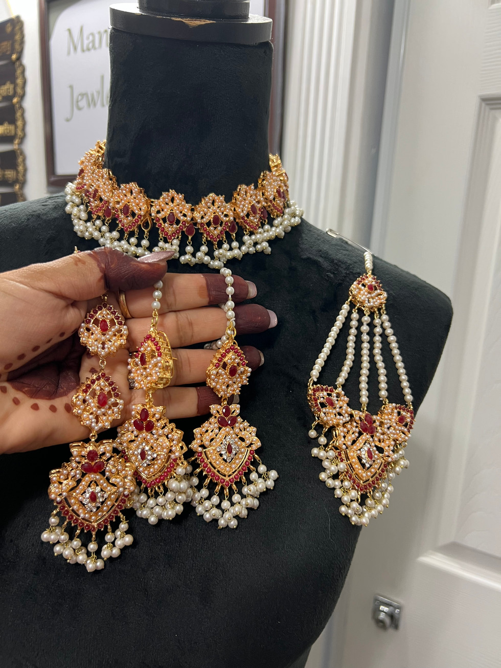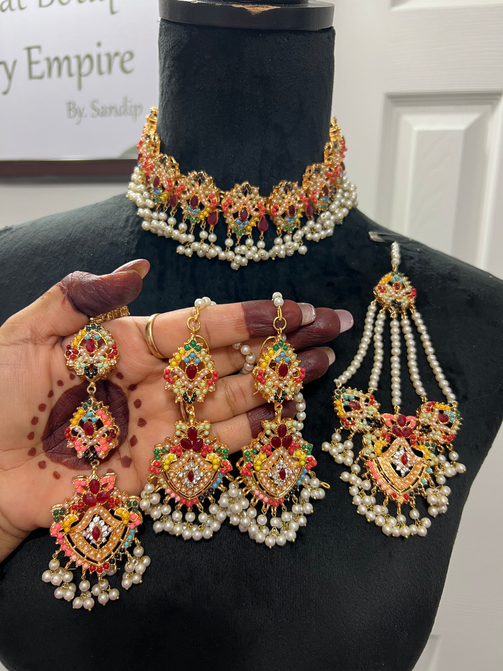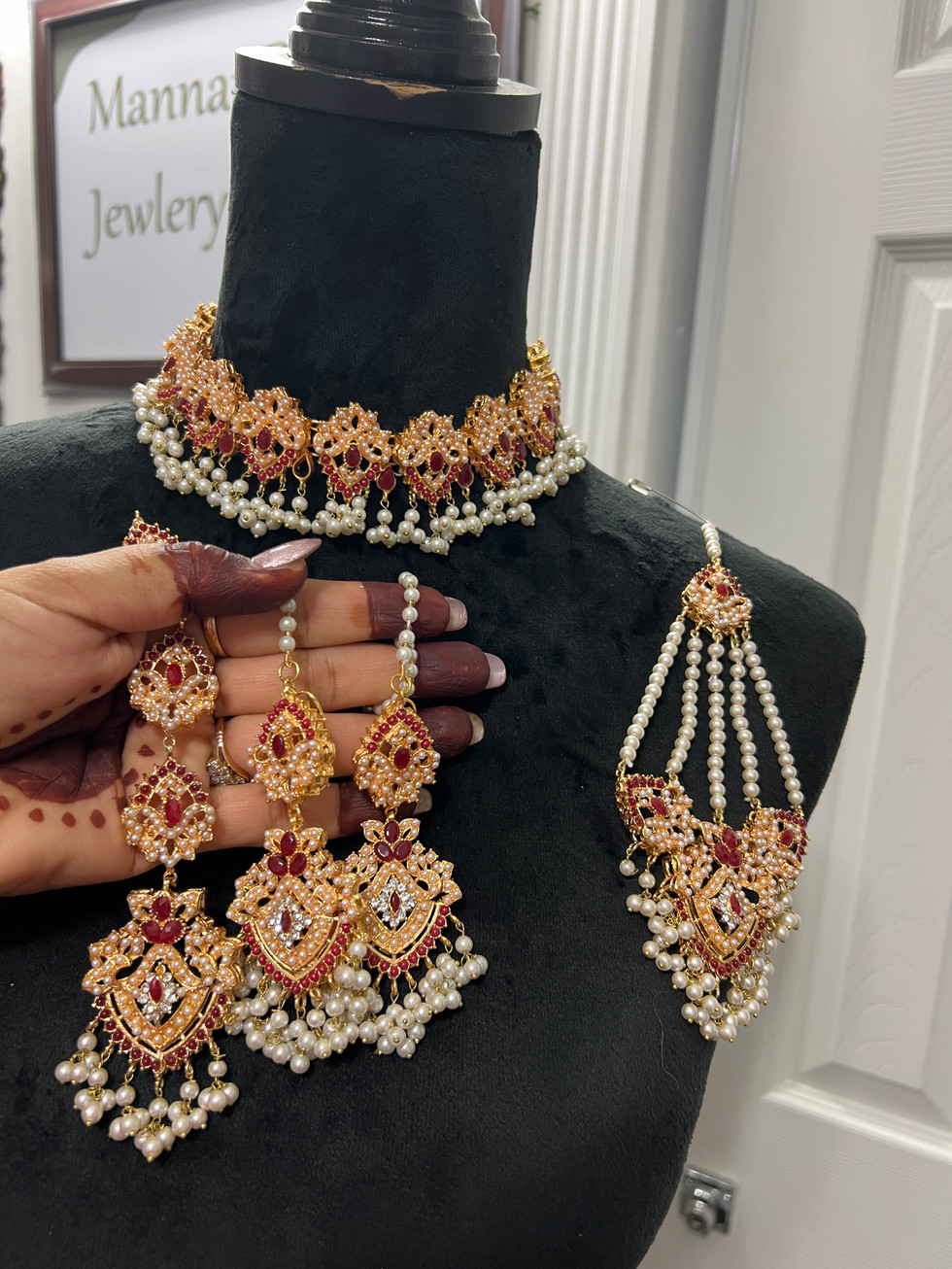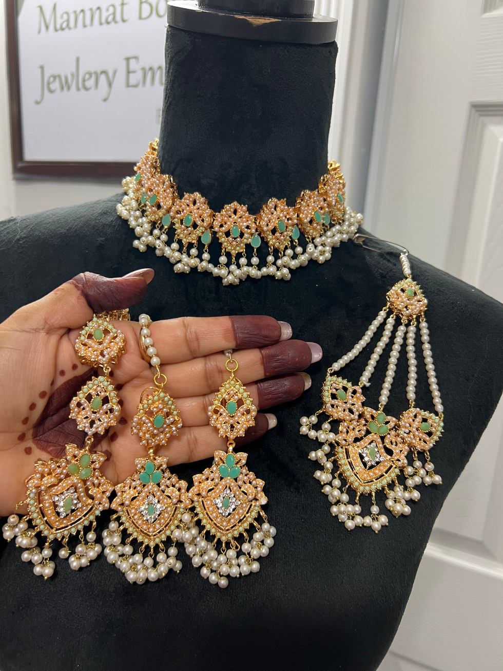 Discover the epitome of elegance with our high-quality Pakistani set from Mannat Boutique. This exquisite collection includes a stunning necklace, earrings, tikka, and passa, crafted to perfection. Ideal for special occasions, our Pakistani set combines traditional craftsmanship with contemporary design, reflecting our commitment to providing timeless beauty. Elevate your ensemble with these remarkable pieces, uniquely designed to make you shine. Trust Mannat Boutique for sophistication and superior quality in every detail.