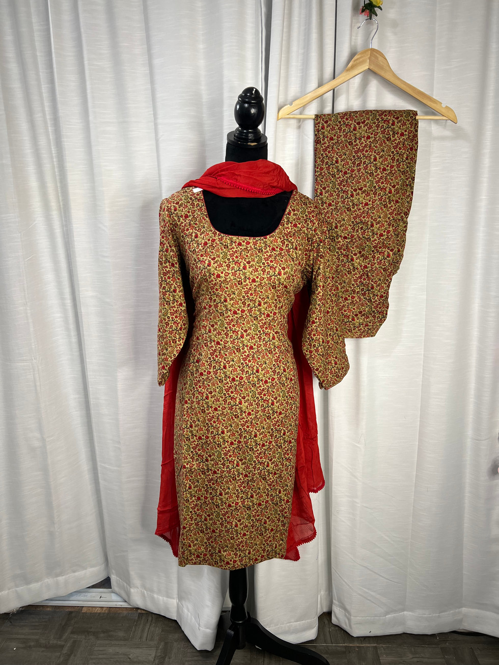 Introducing the Pashmina Salwar Suit Code 4246 from Mannat Boutique, where elegance meets tradition. This exquisite ensemble features a pure pashmina print salwar suit paired with a pure chinon dupatta adorned with delicate lace. The suit comes fully stitched, complete with lining, piping, a zipper, and a dori for a flawless fit. Designed for the discerning wardrobe, it combines luxurious fabrics with impeccable craftsmanship. Step into sophistication with this meticulously crafted attire, perfect for any occasion.