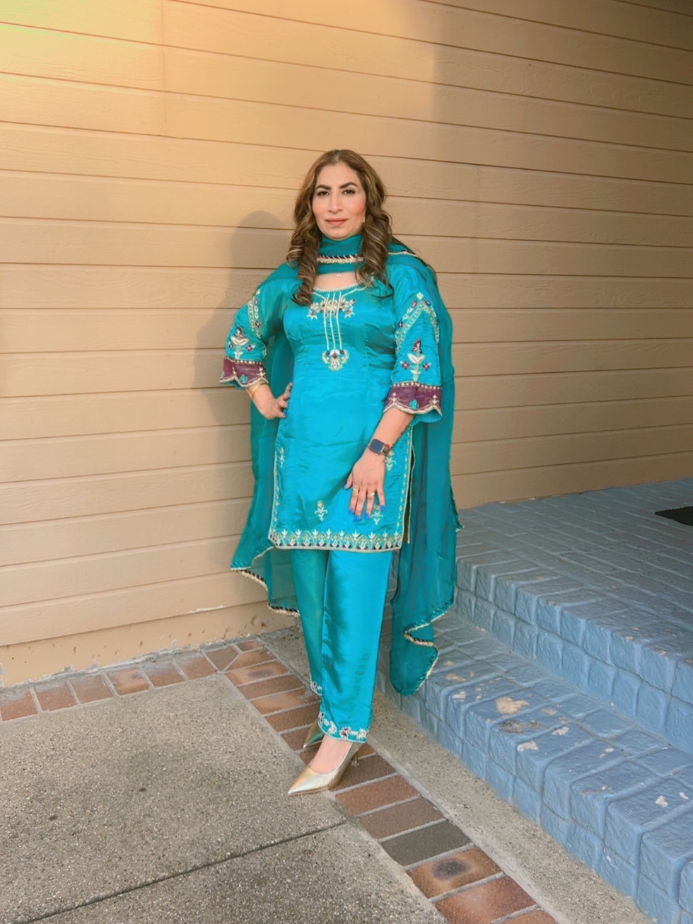 Experience elegance with the Pure Glass Silk Handwork Pant Palazo Suit Code40GS, crafted to perfection at Mannat Boutique. This exquisite outfit features a pure glass silk handwork pant palazo suit paired with a pure chinon dupatta with lace, combining traditional artistry with modern comfort. Fully stitched with lining, piping, zipper, and latkan, it ensures a flawless fit and effortless style. Designed for those who appreciate refined Indian wear, this ensemble reflects Mannat Boutique’s commitment to quality and detailed craftsmanship. Elevate your wardrobe with this sophisticated suit that celebrates timeless beauty and contemporary design.