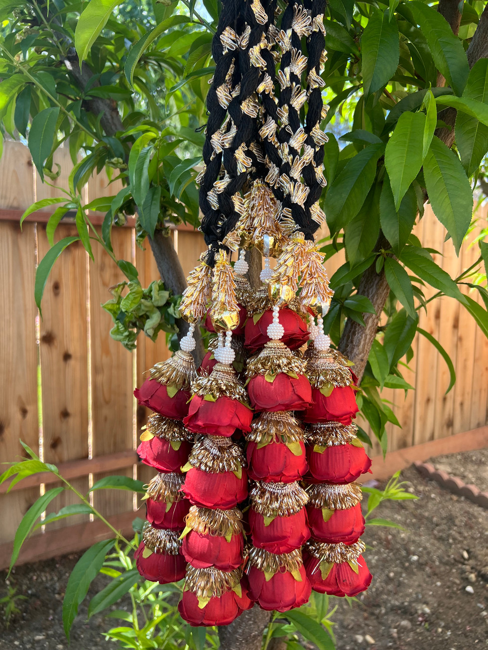 Experience the elegance of tradition with the Red Flowers Paranda from Mannat Boutique, featuring a vibrant red flowers parade with golden gotta accents. Crafted with good quality materials, this traditional paranda adds a timeless charm to your Indian outfits. Perfectly designed for those who appreciate authentic craftsmanship, it enhances both casual and festive looks. At Mannat Boutique, we are committed to offering exquisite pieces that celebrate cultural heritage with style and durability. Elevate your ensemble with this beautiful accessory that blends tradition and quality effortlessly.