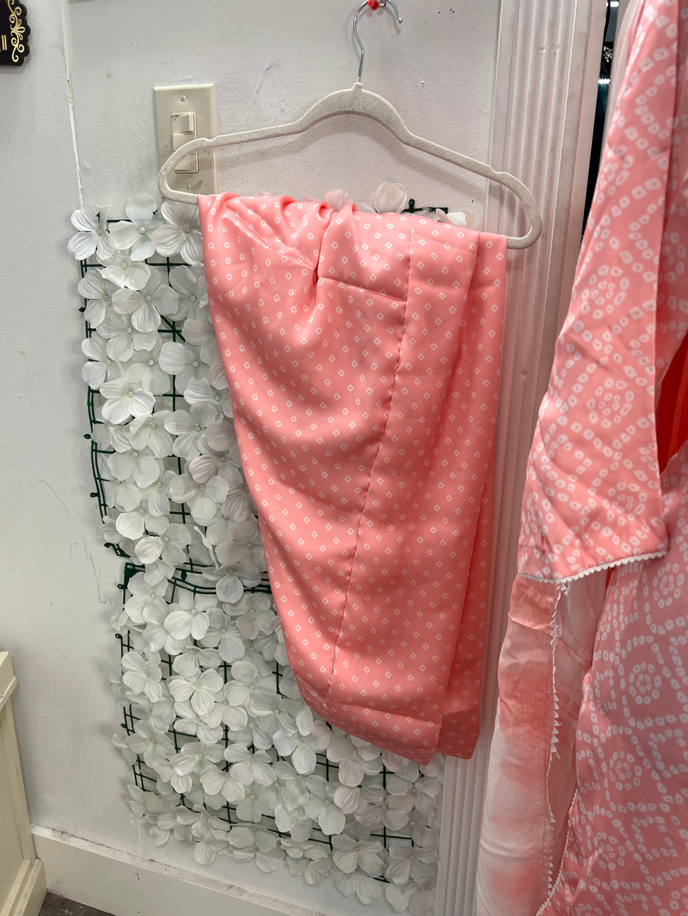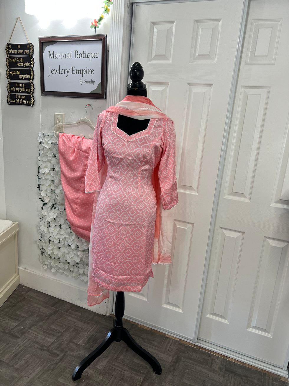 Introducing the Satin Pink Salwar Suit Code 04440, exclusively at Mannat Boutique. Crafted from pure satin, this salwar suit features a captivating bandana print that exudes elegance. Paired with a pure chinon dupatta, beautifully tie-dyed and adorned with delicate lace, it offers a blend of traditional charm and modern style. The fully stitched suit comes with lining, piping, and a convenient zipper for easy wear. Elevate your wardrobe with this exquisite ensemble that reflects Mannat Boutique's commitment to quality and sophistication in Indian outfits.