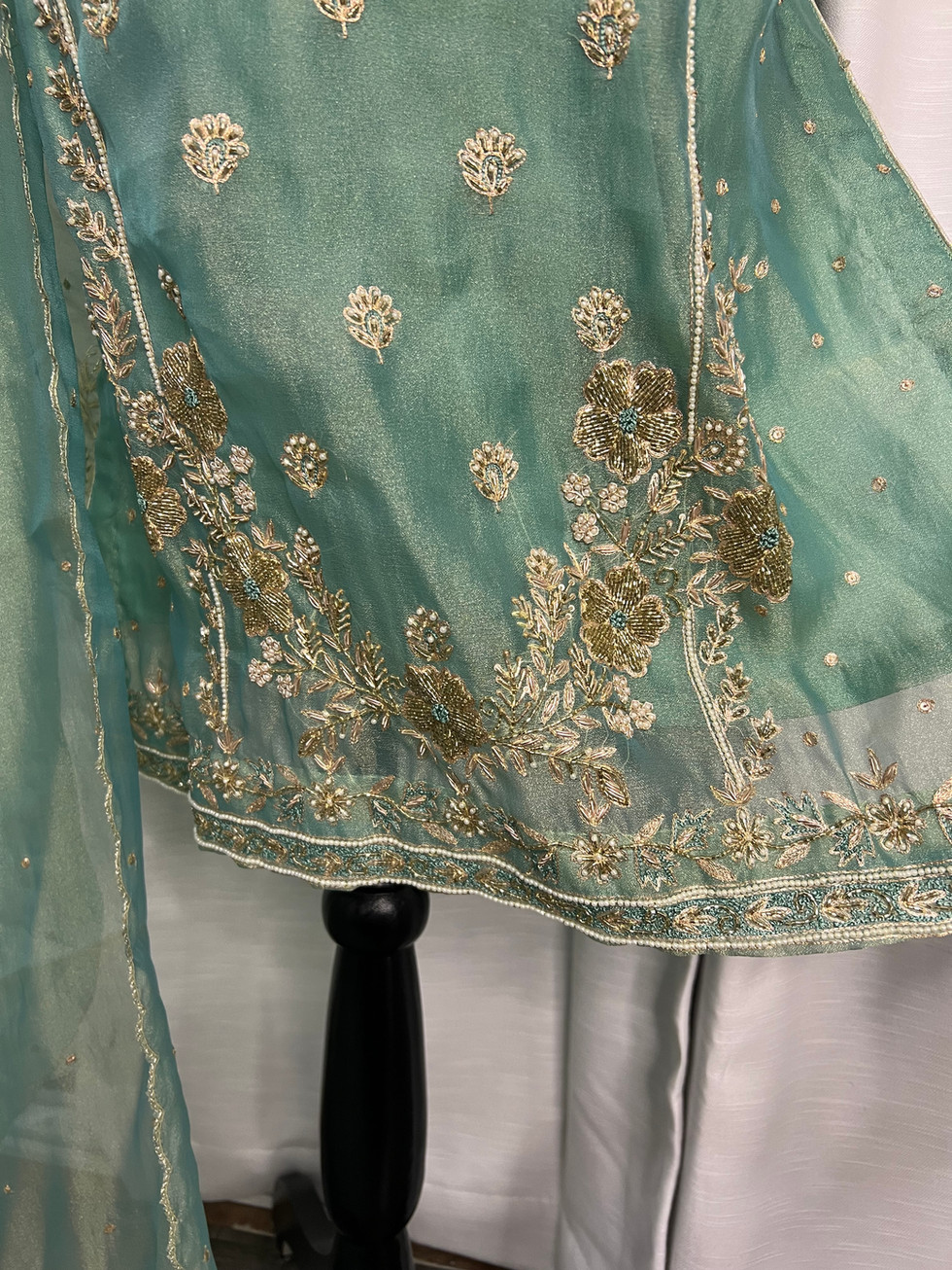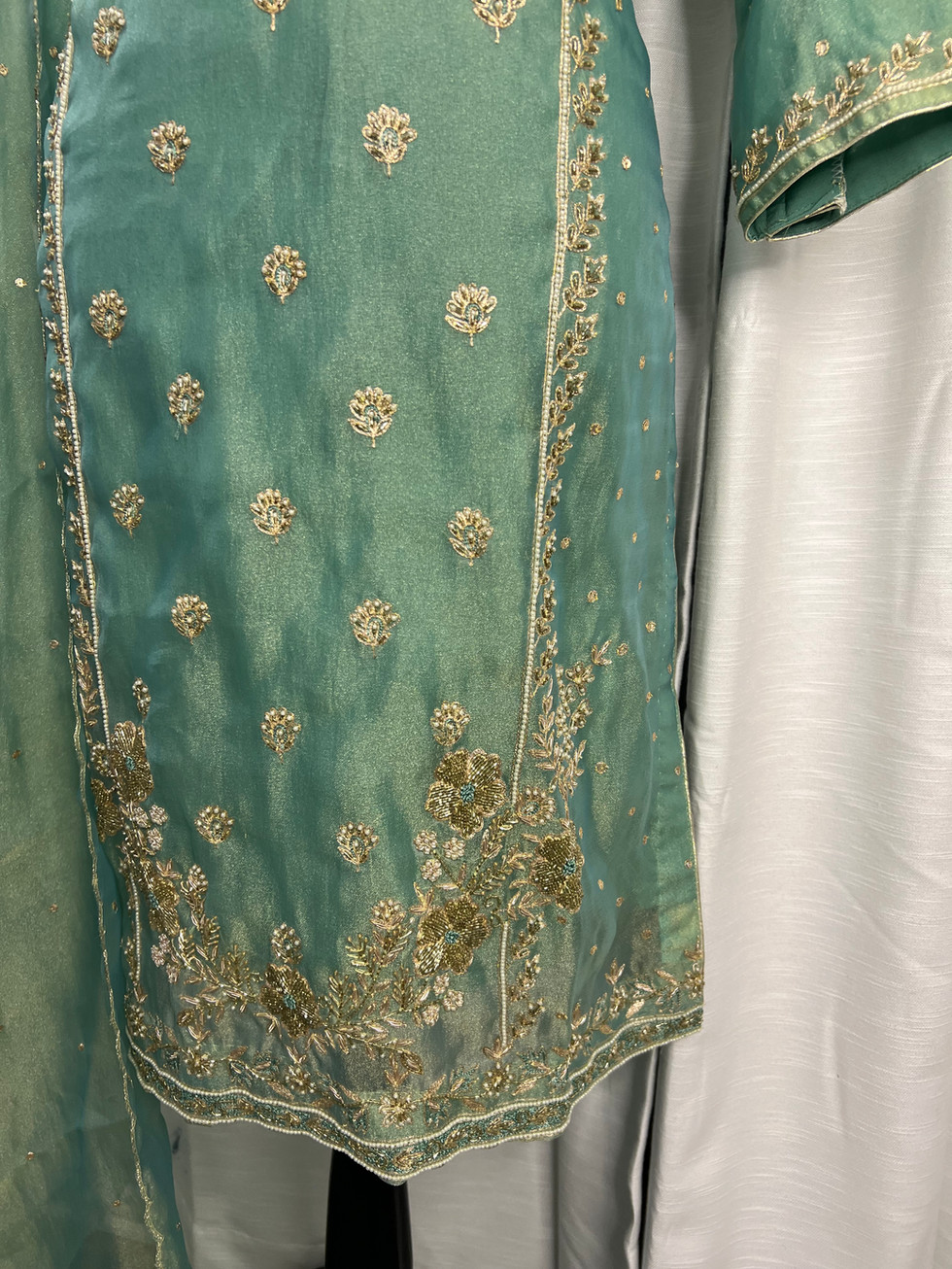 Discover elegance with our Shimmer Salwar Suit Code 42 SH, exclusively at Mannat Boutique. This exquisite ensemble features a shimmer fabric shirt with intricate handwork and a stylishly simple Palin salwar. Completing the look is a shimmer dupatta adorned with delicate handwork. Enjoy the comfort and sophistication of a fully stitched suit, complete with lining, piping, zipper, and dori. Embrace the tradition and allure of Indian outfits with Mannat Boutique.
