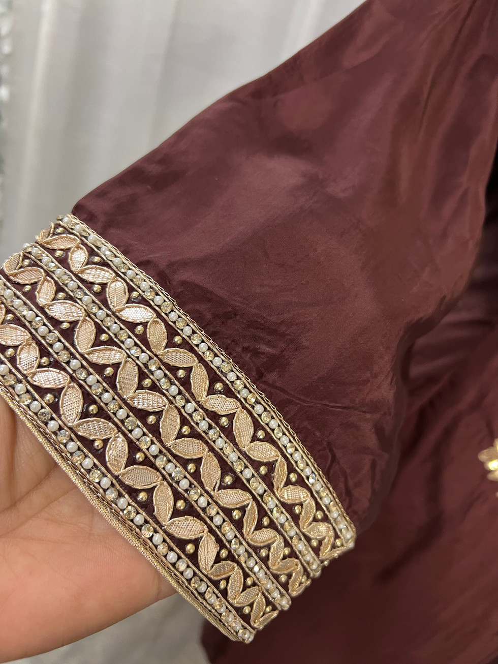 Experience elegance with the Silk Handwork Farshi Salwar Suit Code44 from Mannat Boutique, crafted in luxurious silk fabric handwork farshi salwar that ensures both style and comfort. This fully stitched suit features meticulous detailing including lining, piping, a zipper, and dori at the back for a perfect fit. Complemented by a pure chinon duppatta with delicate lace, this ensemble embodies traditional charm with modern sophistication. Designed for those seeking premium Indian outfits, Mannat Boutique delivers quality and craftsmanship in every stitch. Elevate your wardrobe with this timeless piece, tailored to celebrate your unique style.