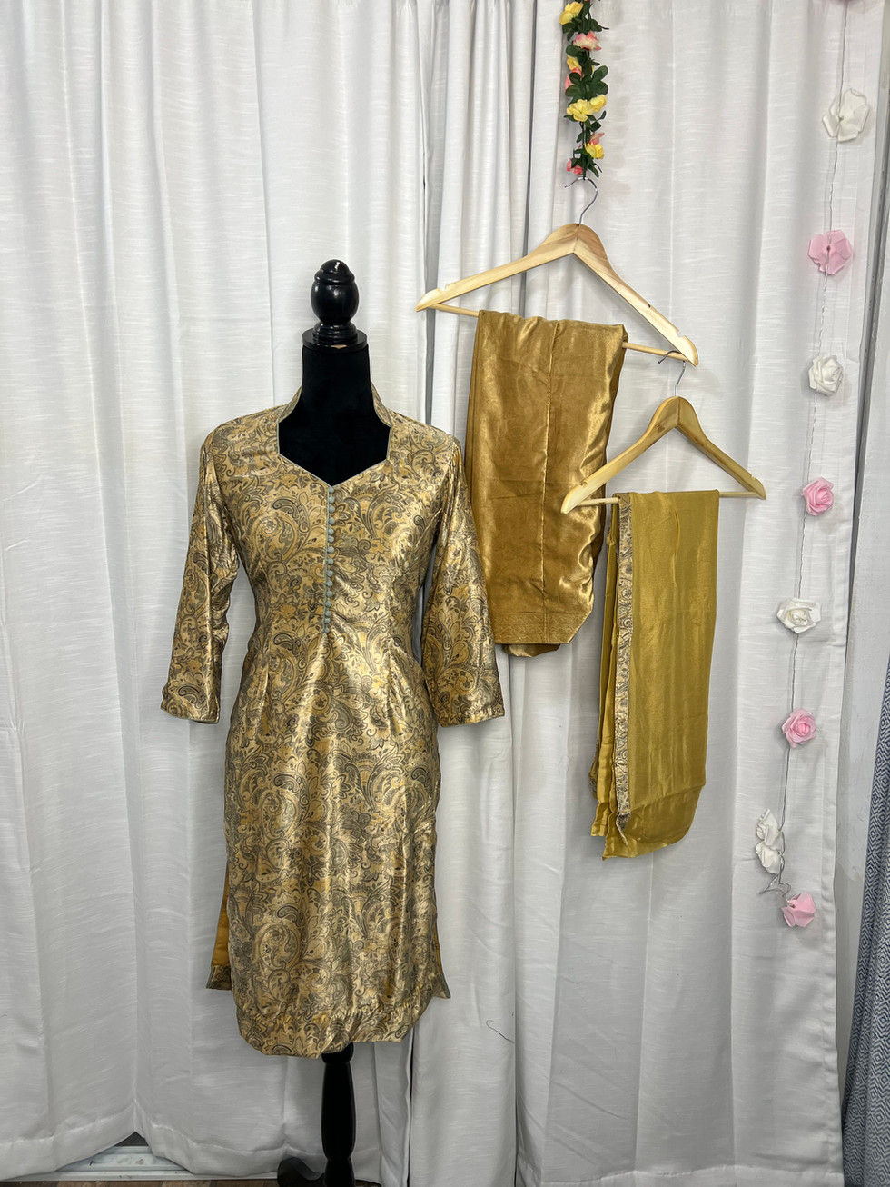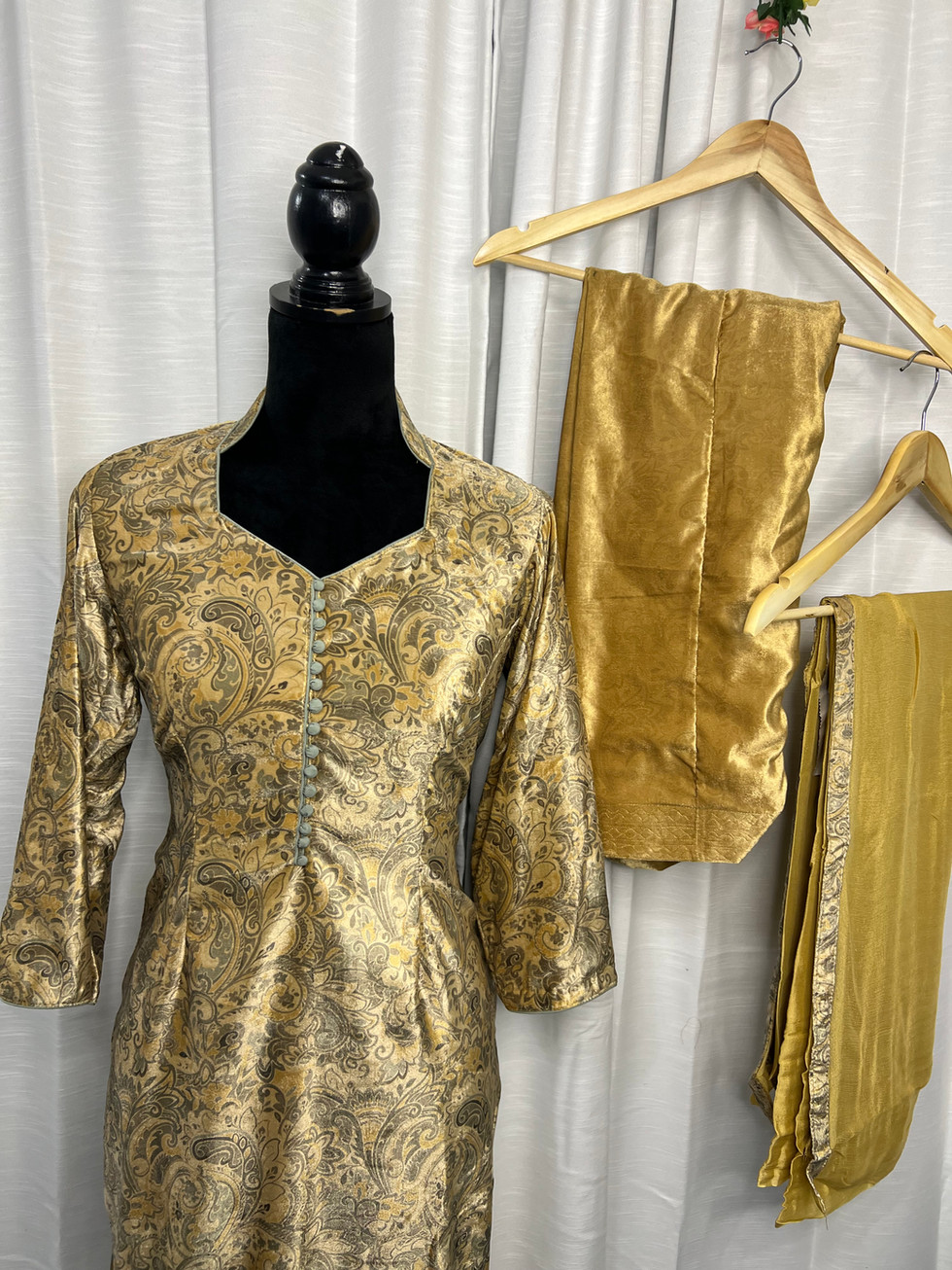 Experience the epitome of luxury with Mannat Boutique's Velvet Print Salwar Suit Code42V. This exquisite ensemble features a pure velvet print salwar suit paired with a delicate pure chinon dupatta adorned with intricate Patti work. Meticulously crafted, the fully stitched suit boasts premium lining, elegant piping, a practical zipper, and traditional dori detailing for the perfect fit. Designed for the modern woman who cherishes tradition, this outfit seamlessly blends comfort with opulence. Enhance your wardrobe with this timeless piece and embrace the essence of elegance.