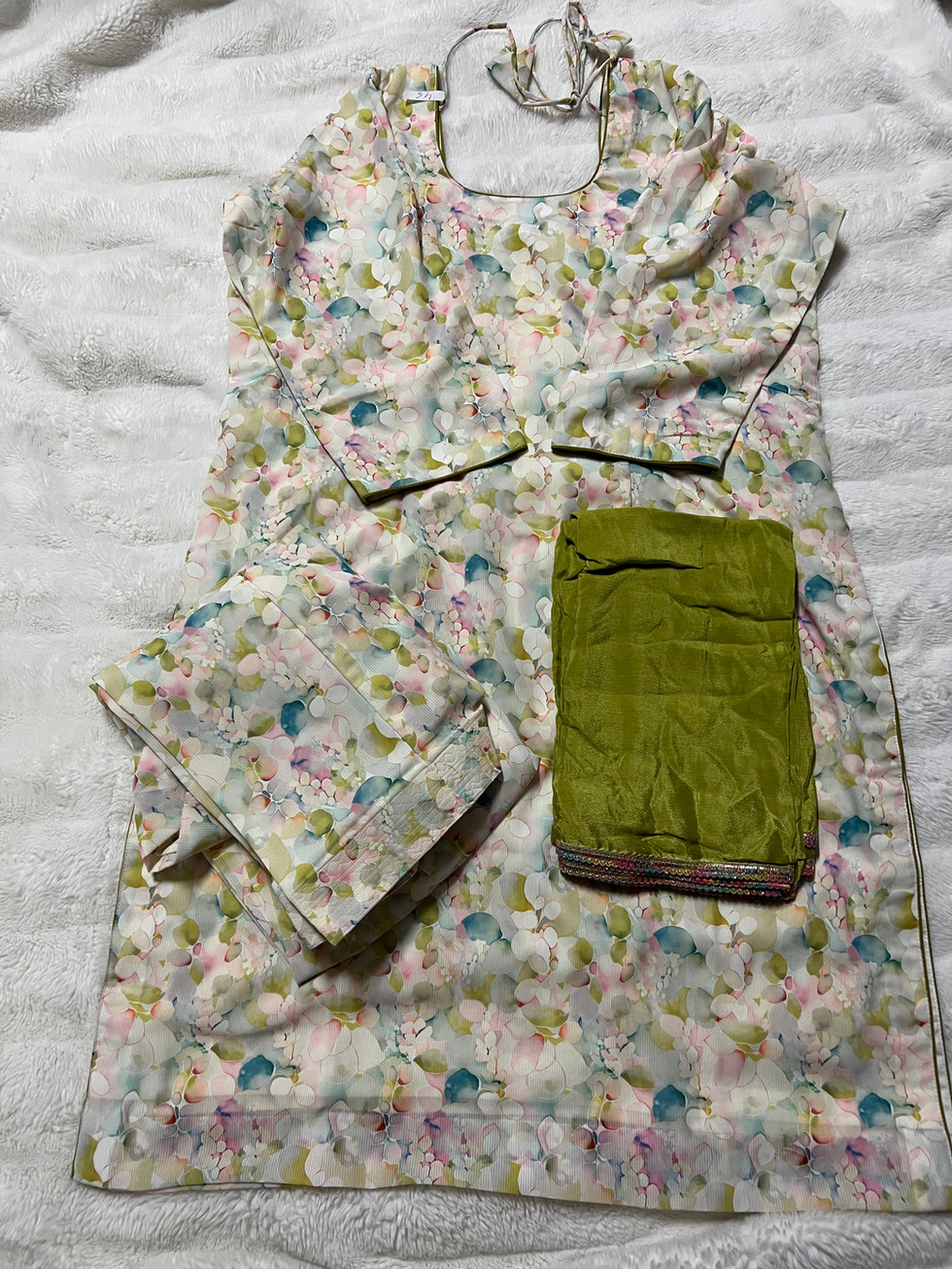 Discover timeless elegance with our white georgette print salwar suit at Mannat Boutique. Crafted from premium georgette fabric, this fully stitched suit features a chic lining and piping for a touch of sophistication. Paired with a pure chinon dupatta adorned with beautiful lace, the ensemble offers an impeccable finish. The convenient zipper ensures a perfect and comfortable fit. Perfect for every special occasion, elevate your wardrobe with this stunning piece.